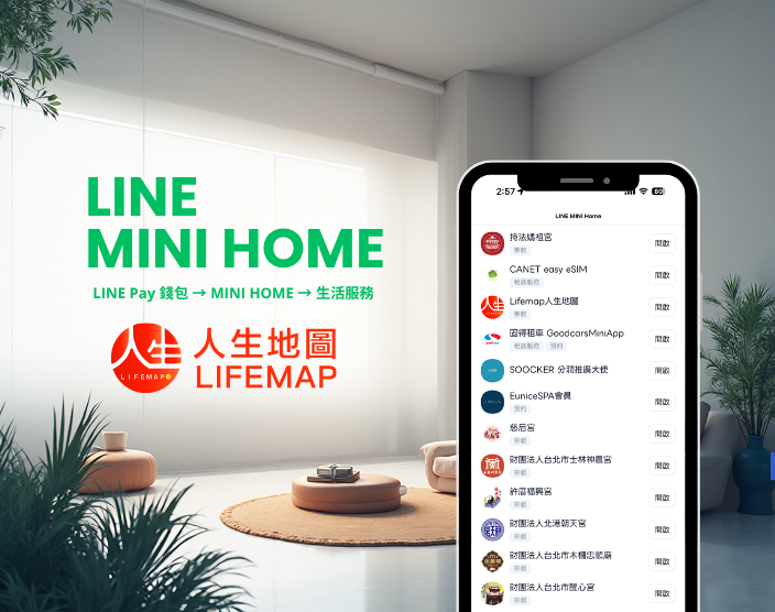 開啟 LINE Pay 錢包 → MINI HOME → 生活服務 → Lifemap 人生地圖